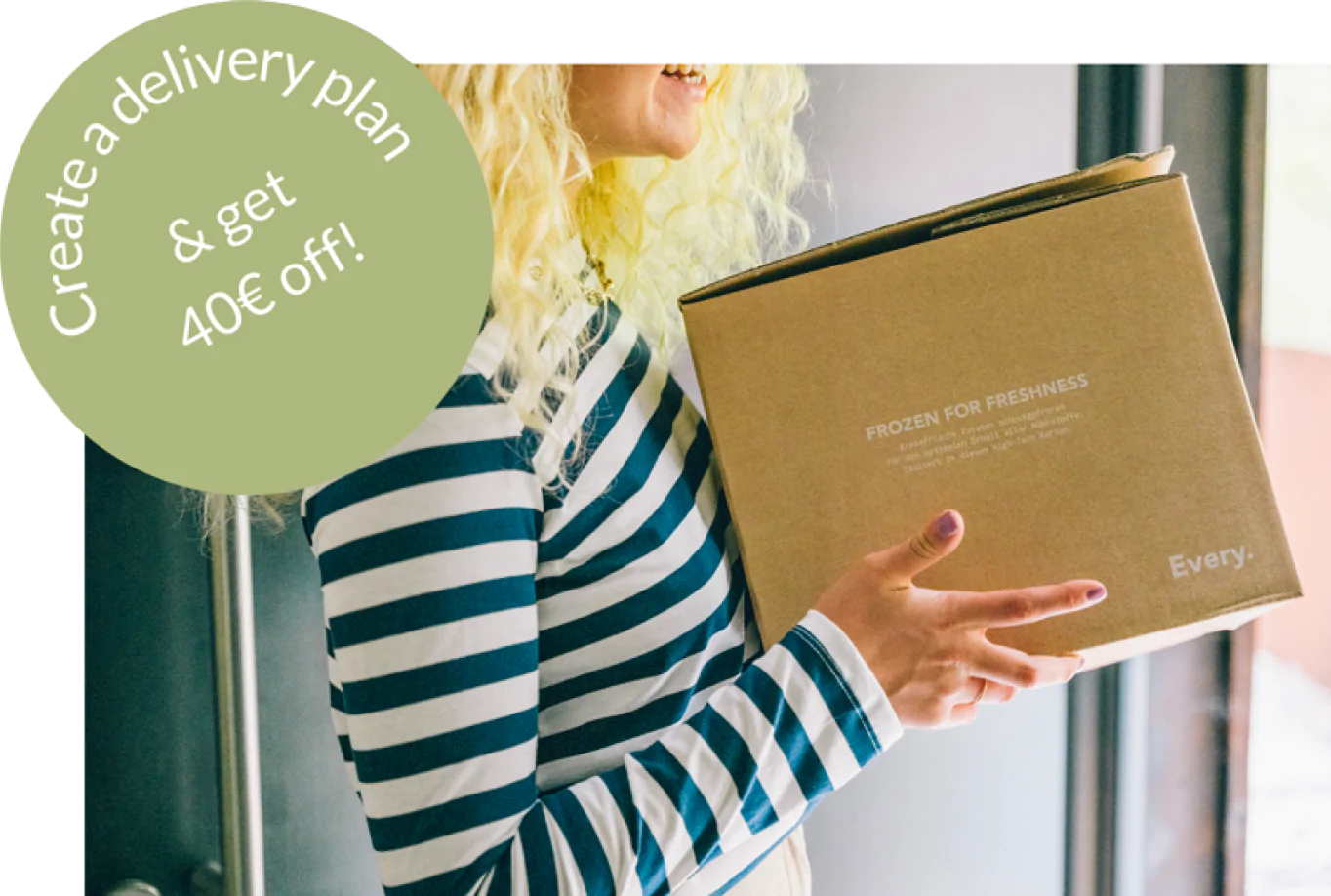 Eén voordeel? Er zijn er meer! Ten eerste krijg je in je abonnement € 40 korting op je eerste vier bestellingen. Je kunt de bezorginterval, productsoorten en -aantallen zelf wijzigen én je kunt de bezorgingen pauzeren wanneer je wilt. Maar het beste is nog, dat Every. direct bij jou thuis wordt afgeleverd zonder dat je er wat voor hoeft te doen!